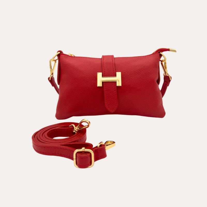 Bolso Bandolera de Piel Rojo con H Dorada