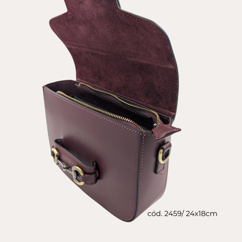 Bolso bandolera color Granate para mujer con diseño elegante y líneas depuradas, ideal para aportar un toque sofisticado a cualquier look. Confeccionado en acabado liso de piel, destaca por su detalle frontal metálico en tono dorado que realza su carácter femenino y actual. Dispone de correa ajustable y extraíble, perfecta para llevarlo al hombro o cruzado con total comodidad. Con unas medidas aproximadas de 25 cm de ancho x 20 cm de alto x 8 cm de fondo, ofrece el espacio ideal para organizar móvil, cartera y esenciales diarios. Un bolso versátil, atemporal y fácil de combinar, imprescindible en el mercado español para looks urbanos, de oficina o eventos.