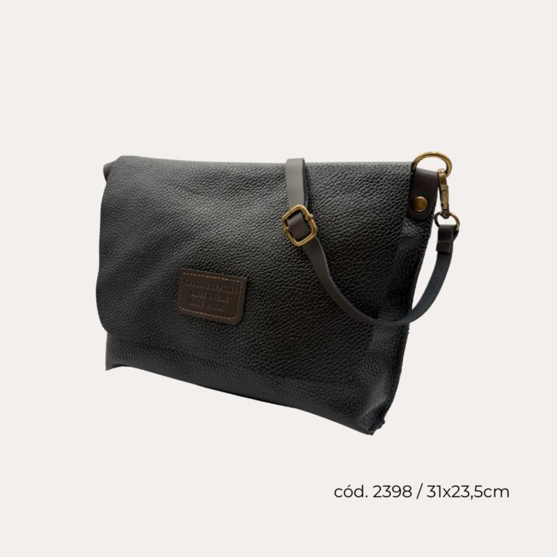 Cartera Bandolera Piel Negra con Solapa (Croosbody)