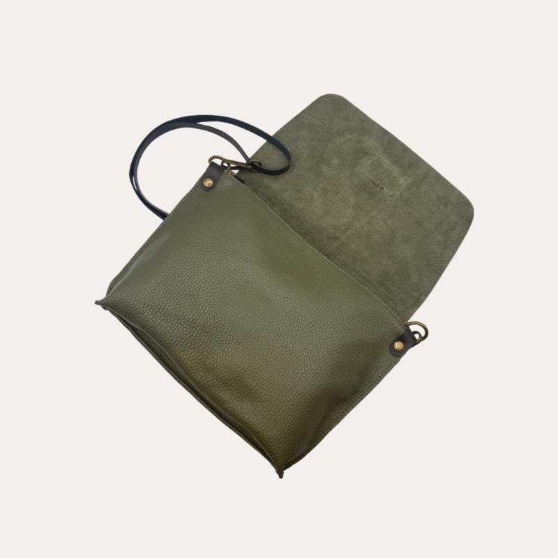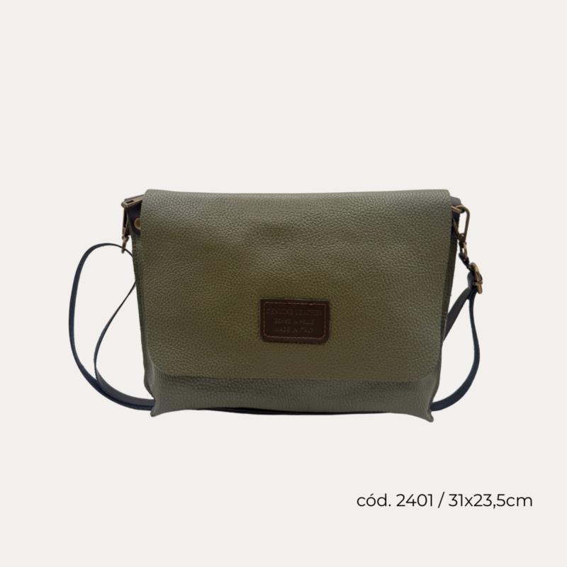 Cartera Bandolera Piel Verde Aceituna con Solapa (Crosbody)