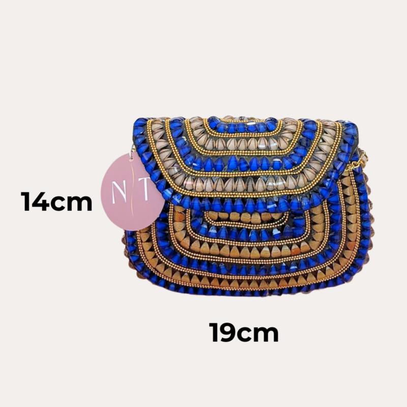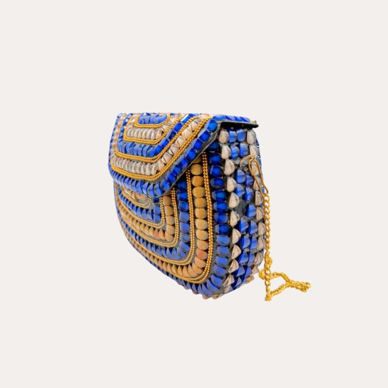 Bolso de Fiesta Dorado con Azul Rígido con Abalorios (clutch)