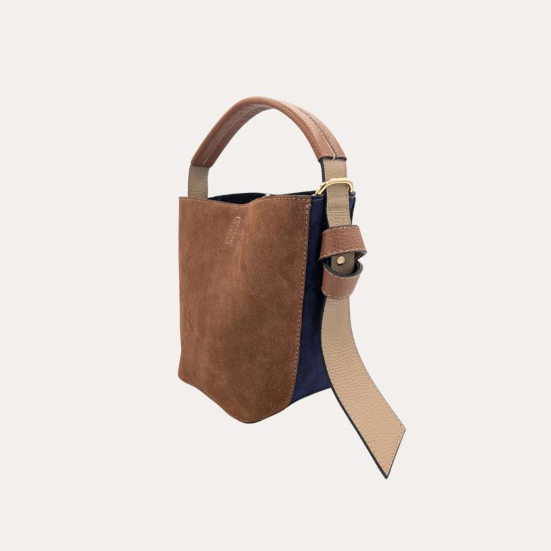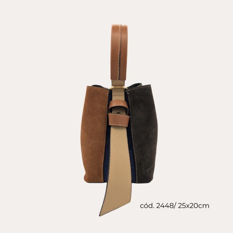Bolso Antelina Pequeño Multicolor Tipo Cubo Asa Marrón