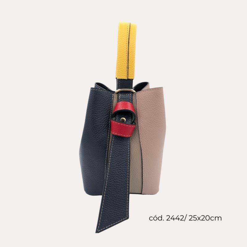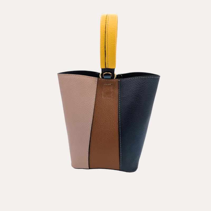 Bolso de Piel Pequeño Multicolor Tipo Cubo Asa Amarilla