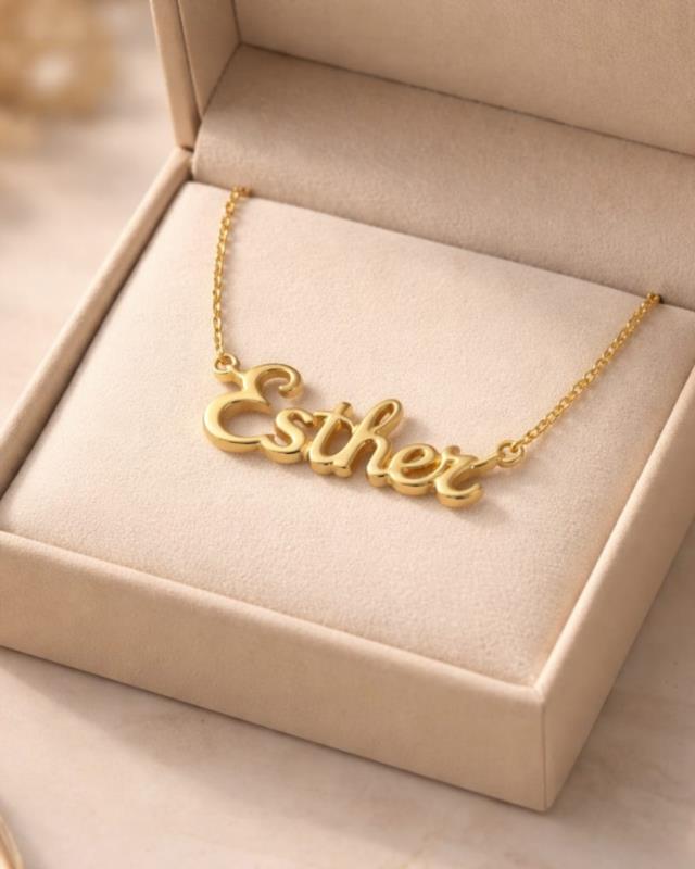 Collar ajustable delicado y actual con el nombre “Esther” en acabado dorado , elaborado en acero inoxidable de alta calidad. Su diseño personalizado aporta un toque íntimo y especial, ideal para llevar a diario o como regalo con significado. Resistente, ligero y de estilo minimal.