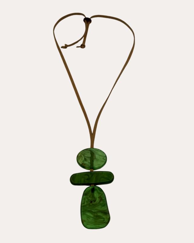 Collar Ajustable Camel con Colgante Tres Piedras Verdes
