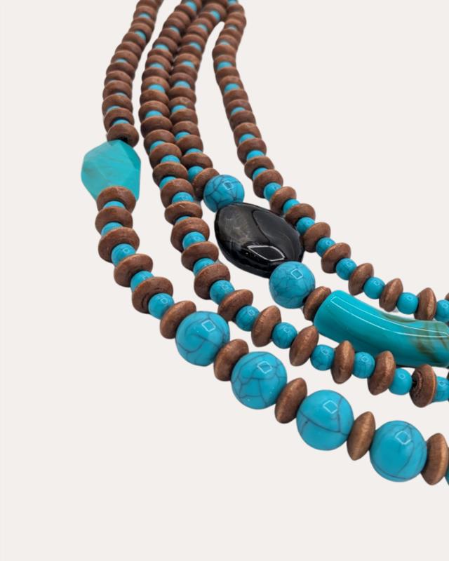 Collar Mediano Madera y Resina Azul