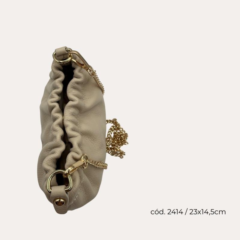 Elegante, femenino y muy fácil de combinar. Este bolso pouch de piel blanco roto con cadena es el complemento ideal para dar un toque sofisticado a cualquier look. Su diseño suave y actual lo convierte en una pieza especial que eleva incluso los estilismos más sencillos. El detalle de la cadena dorada aporta luz y estilo, mientras que su formato pouch permite llevar lo imprescindible de forma cómoda y ordenada. Perfecto para el día o para planes más especiales. Puedes llevarlo al hombro o cruzado , adaptándolo a cada momento. Su acabado en piel suave y resistente ofrece comodidad sin renunciar a la elegancia. Ideal para looks casuales, eventos o salidas donde quieres ir arreglada sin exceso.