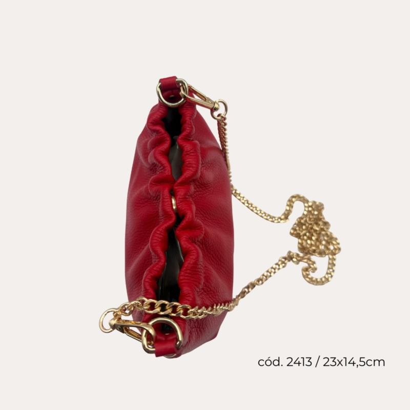 Bolso Pouch Piel Rojo con Cadena