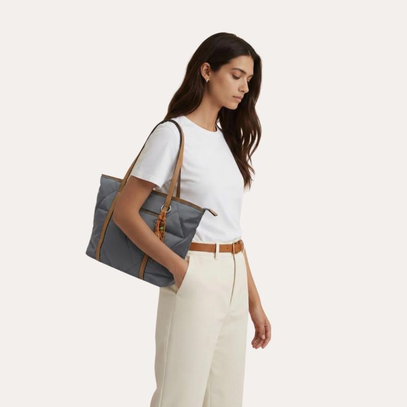 Amplio, cómodo y muy funcional. Este bolso shopper acolchado gris es perfecto para el día a día gracias a su diseño práctico y ligero. Ideal para trabajo, compras, viajes o jornadas largas fuera de casa. Cuenta con bolsillos abiertos y ajustados en ambos lados , ideales para llevar a mano objetos de uso frecuente como el móvil, gafas o llaves. Su diseño es el mismo por ambos lados, manteniendo una estética equilibrada y limpia. Las asas permiten llevarlo cómodamente al hombro , y su acabado acolchado aporta un toque moderno y actual. Con unas medidas de 42,5 × 29 cm , ofrece un interior amplio sin resultar pesado. Un bolso resistente, versátil y fácil de combinar , pensado para un uso diario y cómodo.